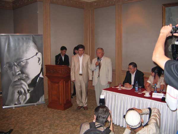 Потом слово было передано поэту Мухтару Шаханову, который в своем выступлении остановился на заслугах Алтынбека Сарсенбаева как гражданина и государственника. Затем общественный деятель стал рассуждать о казахском языке и духовности, заочно полемизировал с латифундистом Ромином Мадиновым по проблеме казахстанской нации.