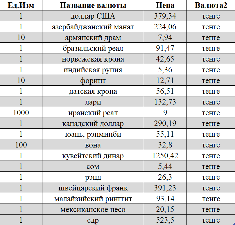Официальные рыночные курсы валют к тенге рассчитаны через кросс-курсы, сложившиеся по состоянию на 16.00 времени Нур-Султана 14 января.
