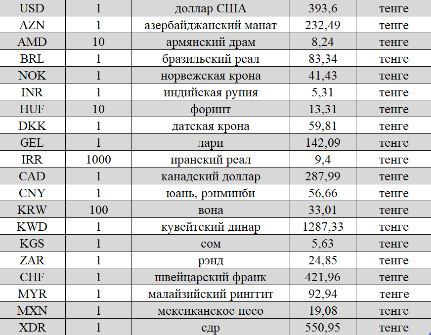 Официальные рыночные курсы валют к тенге рассчитаны через кросс-курсы, сложившиеся по состоянию на 16.00 времени Нур-Султана 10 марта.