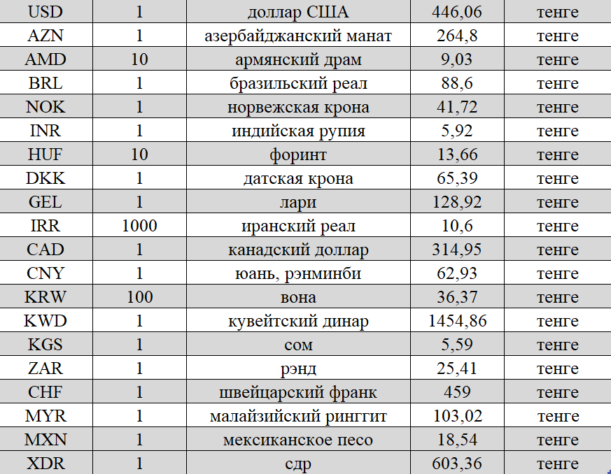 Официальные рыночные курсы валют к тенге рассчитаны через кросс-курсы, сложившиеся по состоянию на 16.00 времени Нур-Султана 26 марта.