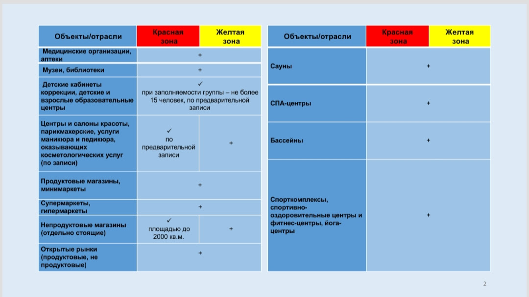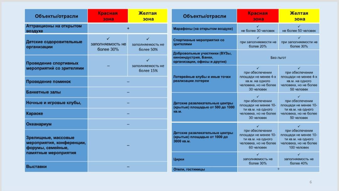 Также он приложил критерии ограничения деятельности социально-экономических объектов в виде таблиц: