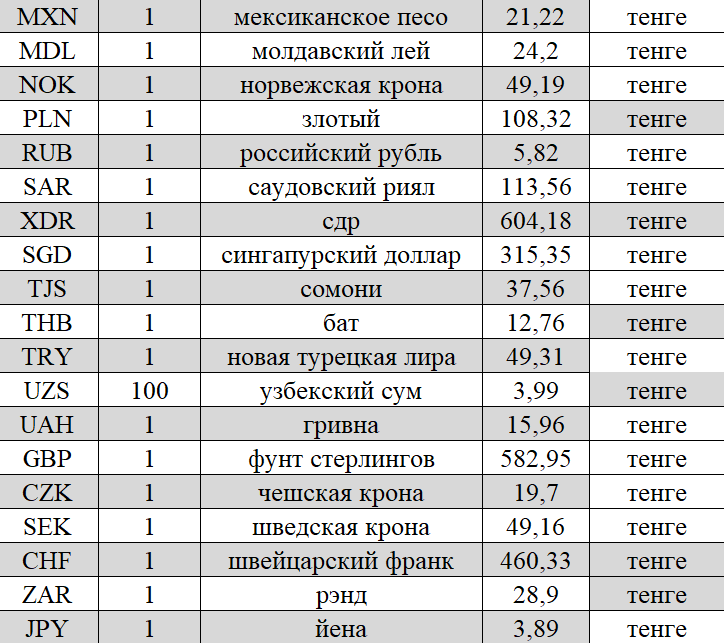 Официальные рыночные курсы валют к тенге рассчитаны через кросс-курсы, сложившиеся по состоянию на 16.00 времени Нур-Султана 21 сентября.