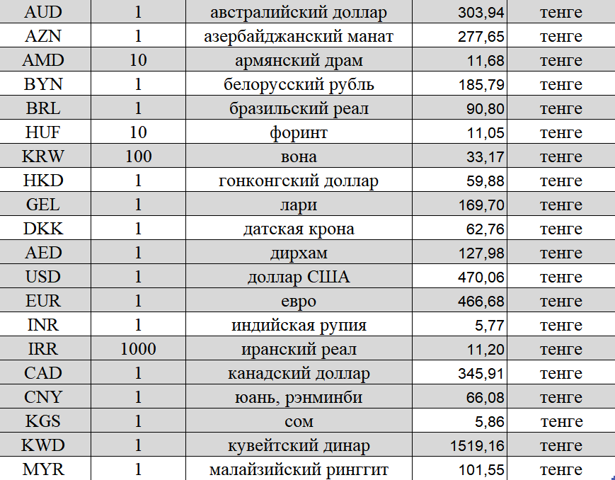 Официальные рыночные курсы валют к тенге рассчитаны через кросс-курсы, сложившиеся по состоянию на 16.00 времени Нур-Султана 5 октября.